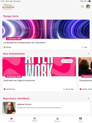 Die Initiative Nice Côte D'azur App ist für Mitglieder der Vereinigung gedacht. Sie bietet einfachen Zugriff auf Kontaktdaten anderer Mitglieder, alle Neuigkeiten des Vereins, und ermöglicht es, Veranstaltungen direkt im Kalender zu speichern und sich via HelloAsso anzumelden.