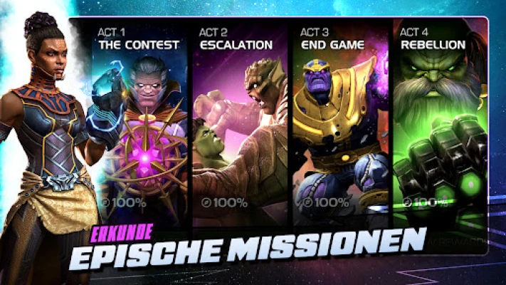 Erlebe epische Versus-Kämpfe und actiongeladene Schlachten mit deinen liebsten Marvel Superhelden und Superschurken. Stelle dein ultimatives Team zusammen und stürze dich in den kosmischen Showdown, um der Champion zu werden.