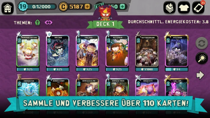 Tauche ein in das unverwechselbare Chaos der schrägsten Kleinstadt Amerikas, wo Strategie auf beißenden Humor trifft! Aus den Hallen der South Park Digital Studios kommt ein Echtzeit-Kampfspiel, das die Grenzen des mobilen Entertainment neu definiert: "South Park: Phone Destroyer™". Versammle deine Lieblingscharaktere wie Cartman, Kenny, Stan und Kyle in einem Sammelkartenspiel, das sowohl dein taktisches Geschick als auch deine Lachmuskeln herausfordert. Erlebe eine wilde Mischung aus explosiven PvP-Gefechten und einer brandneuen, tiefgründigen Einzelspieler-Kampagne, die dich von Anfang bis Ende fesseln wird.