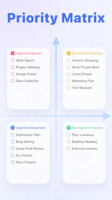 Die Organisation Ihrer Aufgaben war noch nie so vielseitig und persönlich. Mit TickTick können Sie Ihre Einträge durch Listen, Ordner und Tags klar strukturieren, große Projekte in handliche Checklisten zerlegen und Prioritäten setzen, um sich auf das Wesentliche zu fokussieren. Sortieren Sie Aufgaben nach Datum, Dringlichkeit oder Titel und bereichern Sie diese mit relevanten Anhängen wie Fotos oder Sprachnotizen. Intuitive Gesten, wie das Wischen für schnelle Bearbeitungen oder langes Drücken für die Mehrfachauswahl, optimieren Ihren Workflow. Auch im Team beweist sich TickTick als leistungsstarkes Tool: Teilen Sie Listen, weisen Sie Aufgaben gezielt zu und arbeiten Sie reibungslos mit Kollegen, Freunden oder der Familie an gemeinsamen Zielen.
